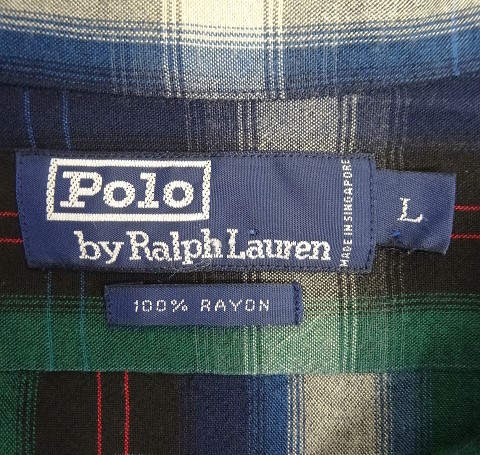 90'S RALPH LAUREN レーヨン 長袖 オープンカラーシャツ オンブレチェック (VINTAGE) [戻る]