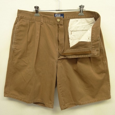 90'S RALPH LAUREN "ボックスロゴ" ツープリーツ チノショーツ ブラウン USA製 (VINTAGE)