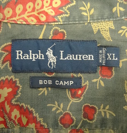 90'S RALPH LAUREN "BOB CAMP" コットン 半袖 オープンカラー&BDシャツ 総柄 (VINTAGE) [戻る]