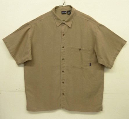 90'S PATAGONIA ヘンプ100% 半袖 ボックスシャツ ライトブラウン (VINTAGE)
