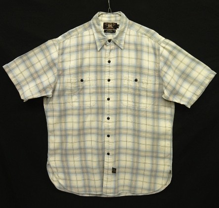 90'S RRL 三ツ星タグ チンスト&マチ付き 猫目ボタン 半袖 ワークシャツ チェック柄 (VINTAGE) [戻る]
