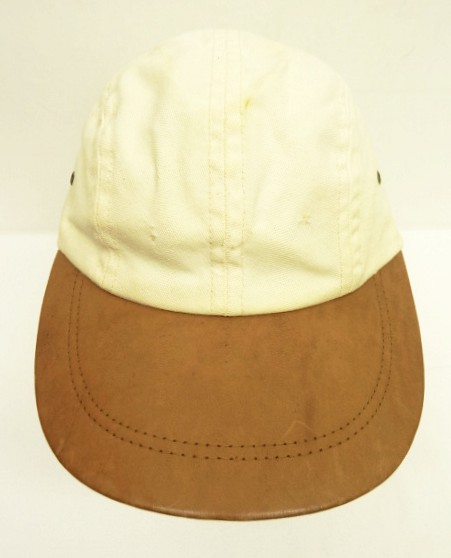 90'S EDDIE BAUER 4パネル レザー/キャンバスキャップ ブラウン/オフホワイト USA製 (VINTAGE) [戻る]