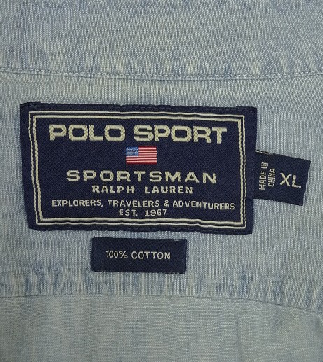 90'S RALPH LAUREN "POLO SPORT" ハーフジップ チンスト&マチ付き 長袖 シャンブレーシャツ ririジップ (VINTAGE)