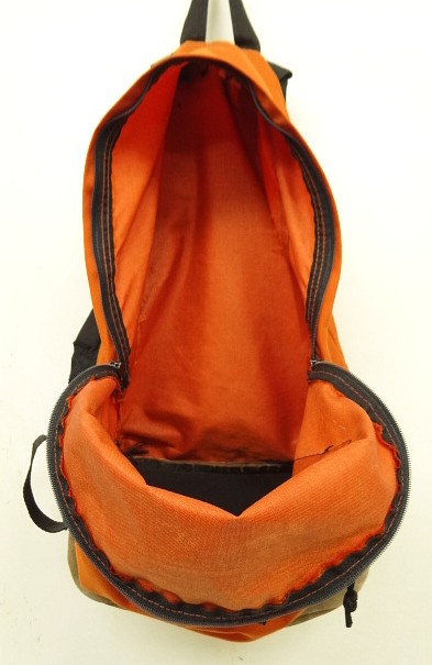 90'S EASTPAK 旧タグ ボトムレザー ナイロン バックパック オレンジ USA製 (VINTAGE)