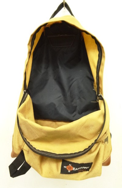 70'S EASTPAK "NEWSタグ" ボトムレザー ナイロン バックパック ベージュ USA製 (VINTAGE) [戻る]