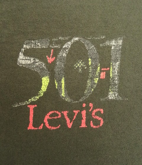 80'S Levis 501 シングルステッチ 両面プリント 半袖 Tシャツ フェードブラック USA製 (VINTAGE) [戻る]