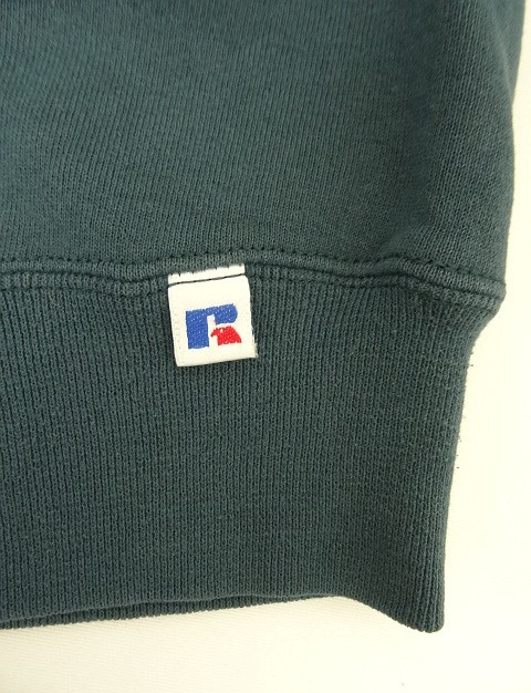 90'S RUSSELL ATHLETIC 前Vガゼット付き クルーネック スウェットシャツ ダークグリーン USA製 (VINTAGE)