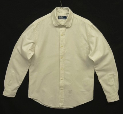 90'S RALPH LAUREN "BLEECKER CLUB" ラウンドカラー 長袖 オックスフォードシャツ ホワイト (VINTAGE) [戻る]