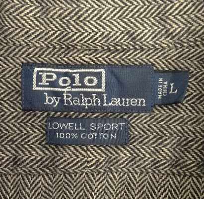 90'S RALPH LAUREN "LOWELL SPORT" ヘリンボーン 長袖 シャツ チャコールグレー (VINTAGE)