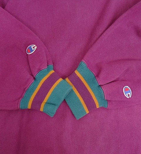 90'S CHAMPION "エラー品両袖目付き" 刺繍タグ リバースウィーブ 目無し 無地 グレープ/リブライン USA製 (VINTAGE)