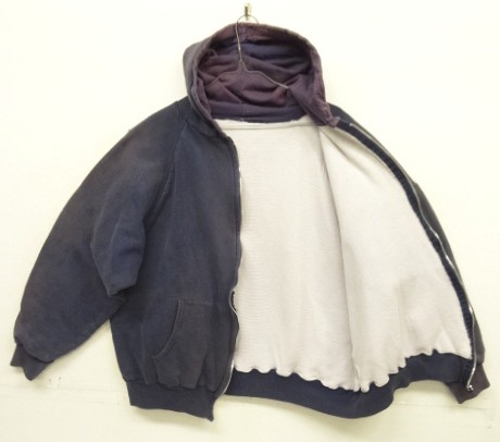 80'S UNKNOWN 裏地サーマル フルジップ ダブルフェイス スウェットパーカー フェードネイビー アルミジップ (VINTAGE)