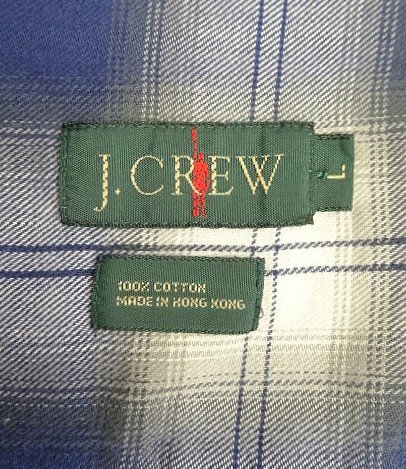 90'S J.CREW 旧タグ コットン100% 長袖シャツ オンブレチェック 香港製 (VINTAGE)