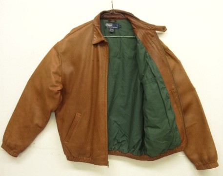 90'S RALPH LAUREN 胸ロゴ無し チンスト付き 裏地付き レザー ドリズラージャケット ブラウン (VINTAGE) [戻る]
