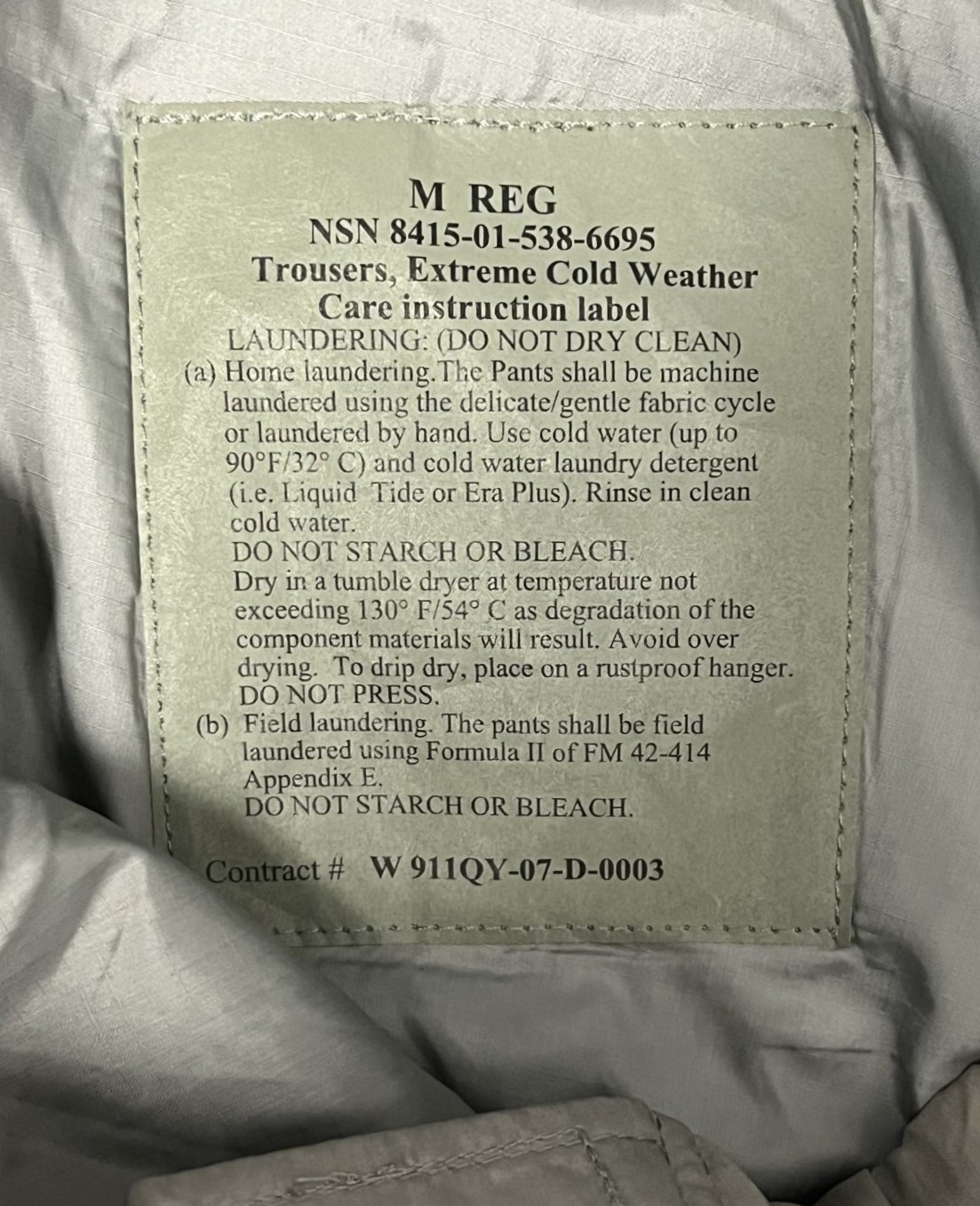 アメリカ軍 US ARMY "WILD THINGS製" ECWCS GENIII LEVEL7 PRIMALOFT パンツ M-R (DEADSTOCK)