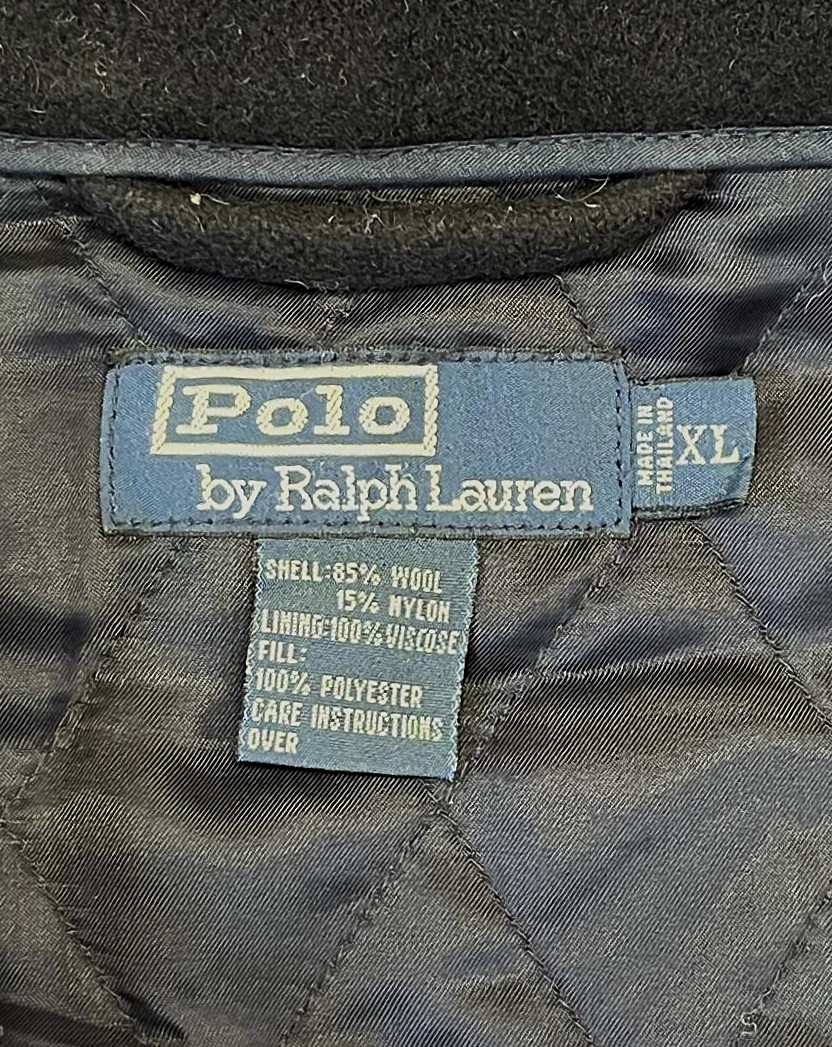 90'S RALPH LAUREN 裏地キルティング レザーエルボーパッチ ウール スポーツジャケット ダークネイビー (VINTAGE)