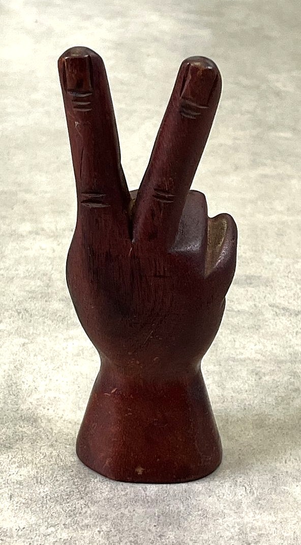 ウッドカービング ピースサイン ハンドサイン オーナメント オブジェ 手彫り 置物 (VINTAGE) [戻る]