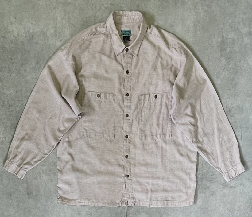 90'S PATAGONIA "ヤシの木タグ" マチ付きポケット 長袖 シャツ ベージュ (VINTAGE)