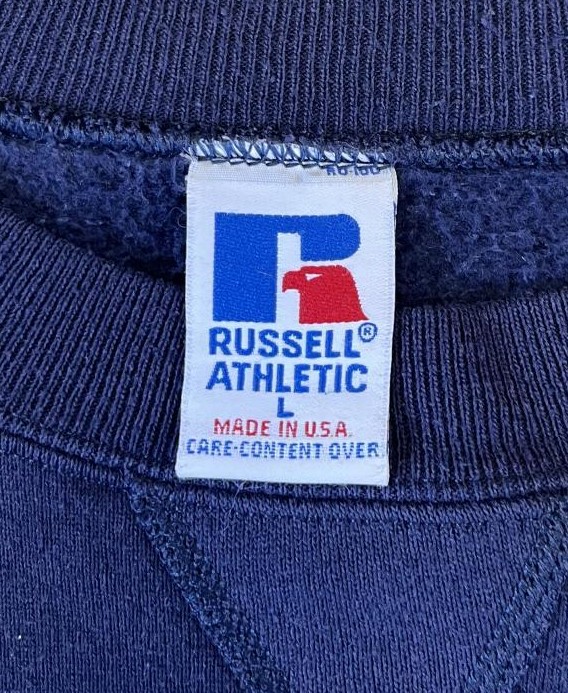 90'S RUSSELL ATHLETIC 前Vガゼット付き クルーネック スウェットシャツ ネイビー USA製 (VINTAGE)
