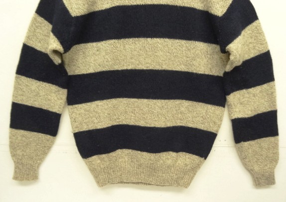 80'S LL Bean クルーネック 太ボーダーセーター ベージュ/ネイビー USA製 (VINTAGE)