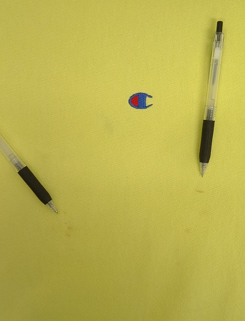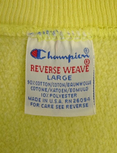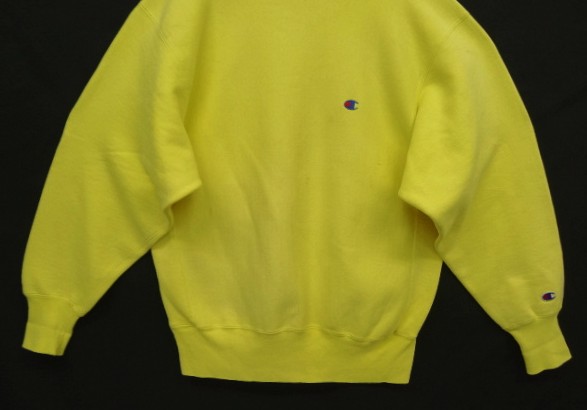 90'S CHAMPION 刺繍タグ リバースウィーブ 無地 レモンイエロー USA製 (VINTAGE)