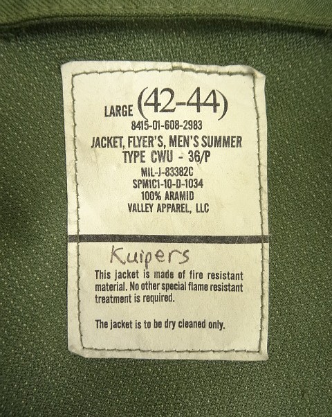 モデル:JACKET, FLYER'S, MEN'S SUMMER, TYPE CWU-36/P