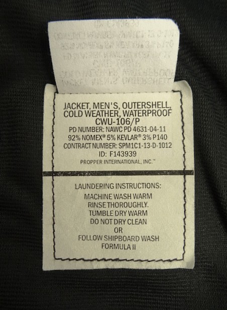 モデル:JACKET, MEN'S, OUTERSHELL, COLD WEATHER, WATERPROOF, CWU-106/P