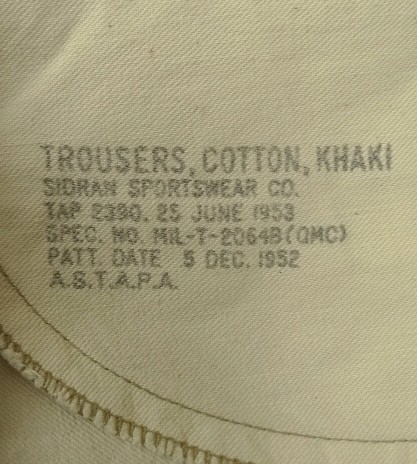 50'S アメリカ軍 US ARMY "MIL-T-2064B" ボタンフライ チノパンツ W33L31 (VINTAGE)