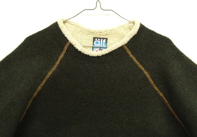90'S ALF 襟ボア付き ラグランスリーブ フリースシャツ ダークオリーブ USA製 (VINTAGE)