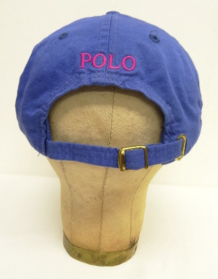 90'S RALPH LAUREN ロゴ刺繍 ベースボールキャップ ブルー USA製 (VINTAGE)