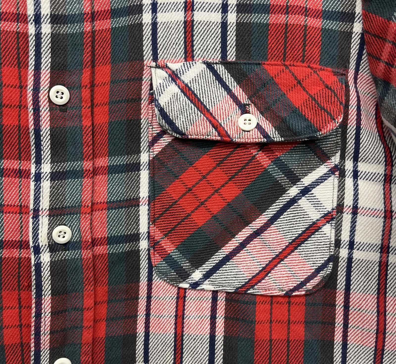 70'S BIG YANK ヘビーフランネル ワークシャツ チェック柄 (VINTAGE) 70'S BIG YANK ヘビーフランネル ワークシャツ チェック柄 (VINTAGE) 販売価格: 7,900円(税別) (税込: 8,690円) 加算ポイント: 237ポイント Tweet サイズ 在庫 表記無し 在庫わずか 販売価格: 7,900円(税別) (税込: 8,690円) 数量: お問い合わせ サイズ:表記無し 着丈73cm 身幅56cm 袖丈60cm 肩幅44cm カラー:チェック柄 素材:フランネル(コットン100%) フラップ付きポケット 70年代製 ★特に目立つキズや汚れはありませんが、VINTAGE商品のため、非常に細かな汚れなどある場合がございます。ご了承ください。 ★会員様3%ポイント還元(237円分)です。 ★会員様通常ポイントも付きます。 ★ポイントは一年間有効となります。 他の写真