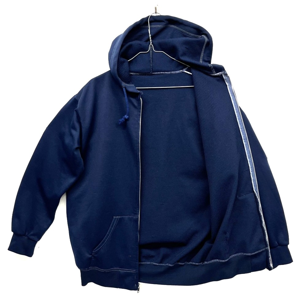 80'S UNKNOWN 裏地サーマル フルジップ ダブルフェイス スウェットパーカー ネイビー PRIDEアルミジップ (VINTAGE)