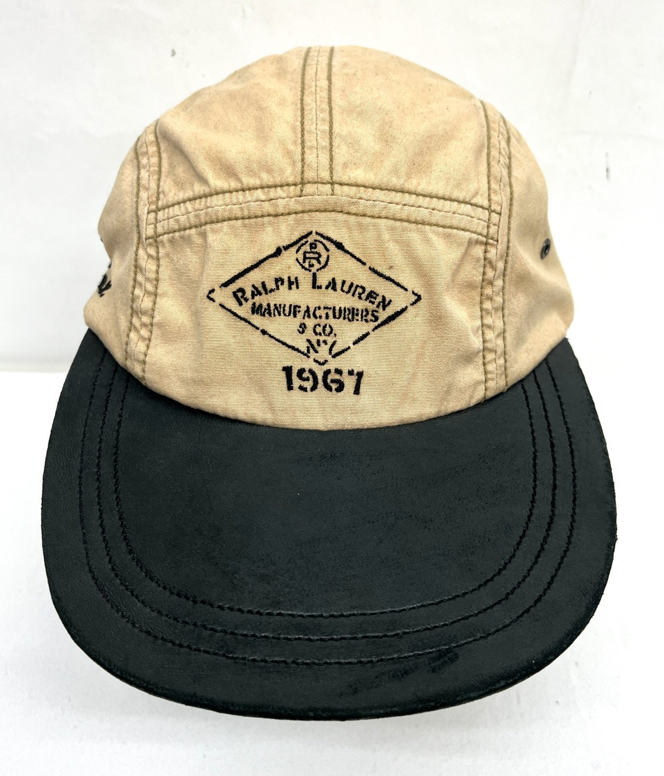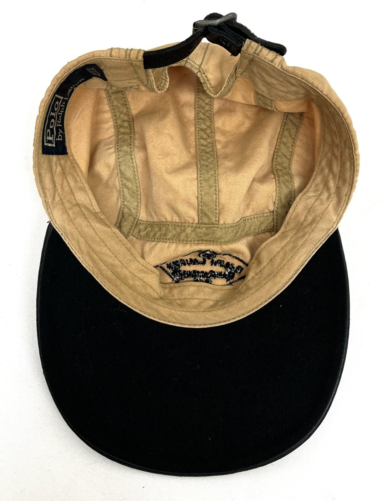 90'S RALPH LAUREN レザー/キャンバス ロングビルキャップ ブラック/ベージュ (VINTAGE)