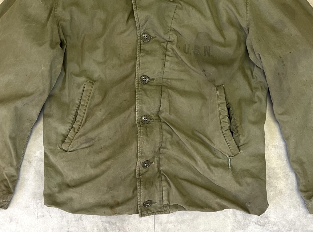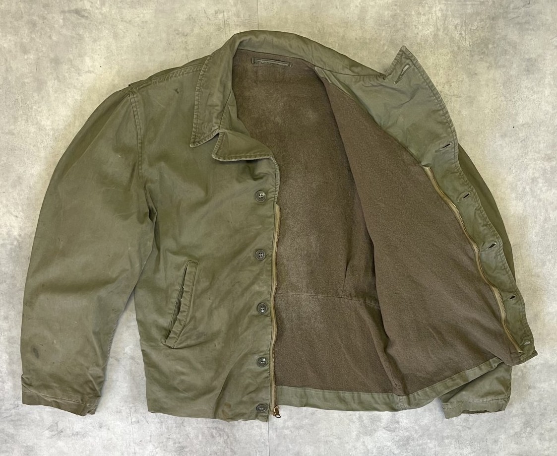 40'S アメリカ軍 US NAVY "N-4" 裏地ウール ステンシル入り デッキジャケット CONMARコの字留めジップ (VINTAGE)