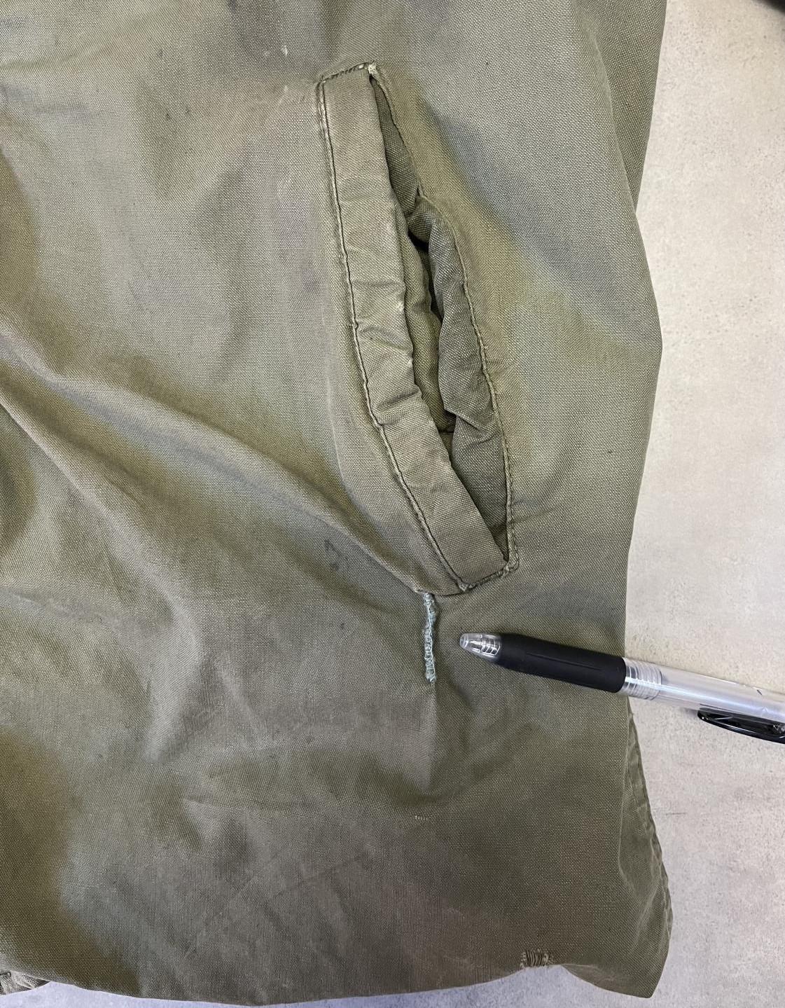 ★左側ポケット下付近にリペア跡があります。右袖に後ろ側に小穴があります。また、VINTAGE商品のため、細かい汚れ等がございます。ご了承ください。