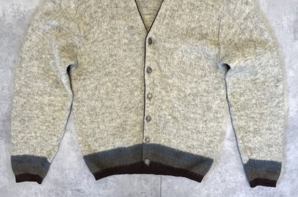 60'S JANTZEN メタルボタン Vネック モヘアニット ナチュラル/ブラウン USA製 (VINTAGE)