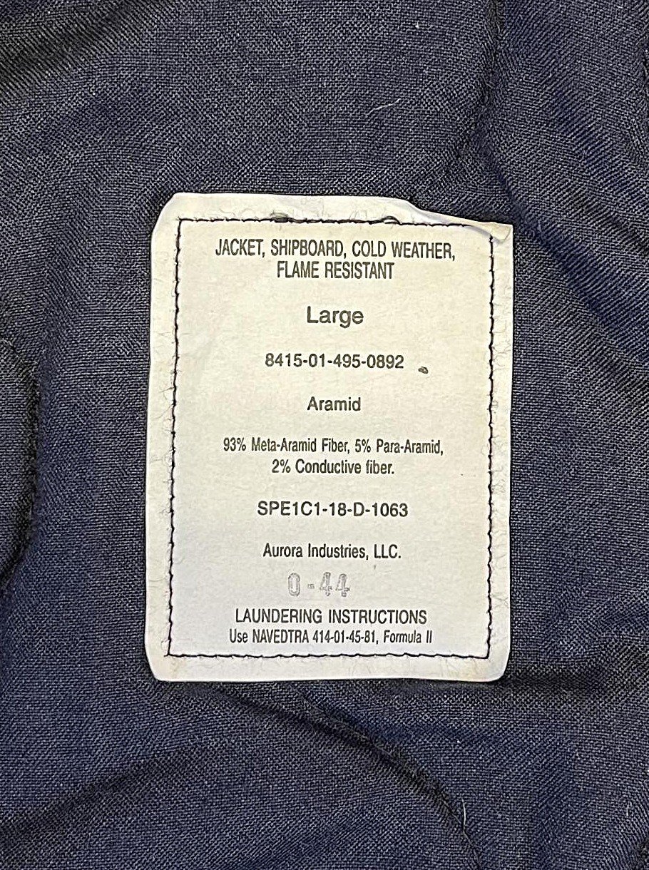 モデル:JACKET, SHIPBOARD, COLD WEATHER, FLAME RESISTANT