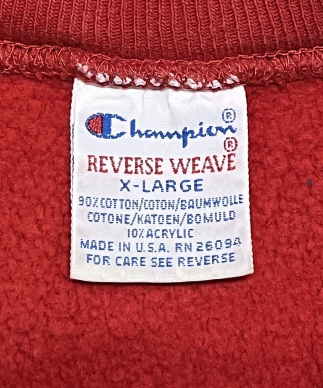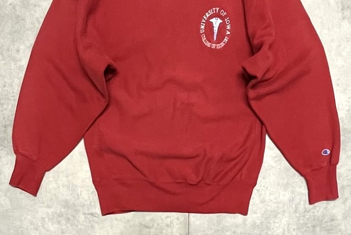 90'S CHAMPION "UNIVERSITY OF IOWA" 刺繍タグ リバースウィーブ レッド USA製 (VINTAGE)