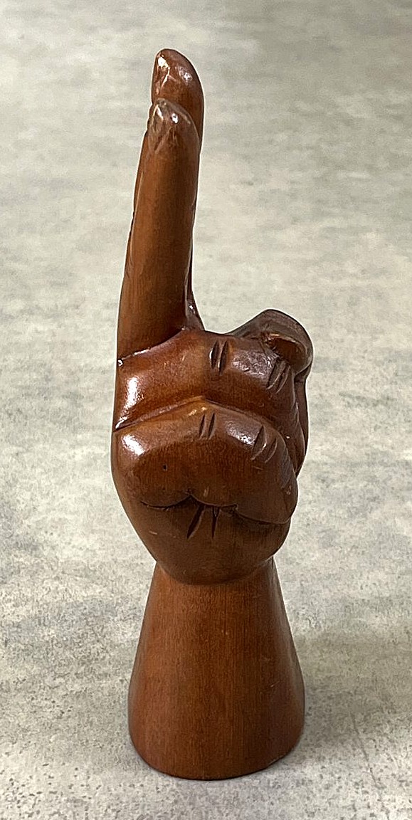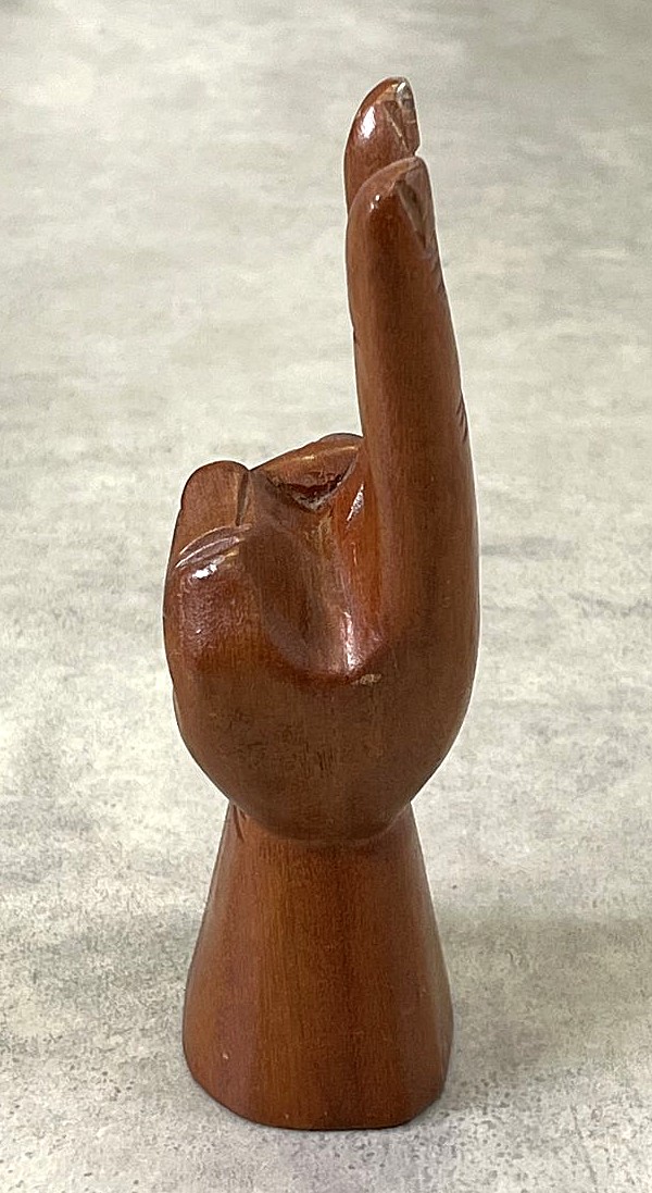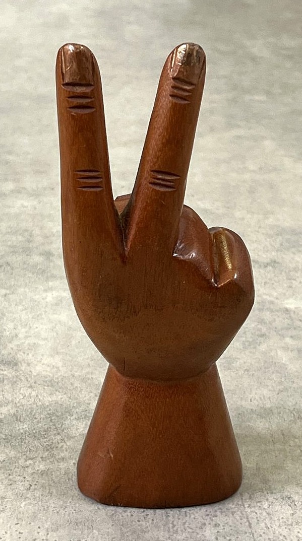 ウッドカービング ピースサイン ハンドサイン オーナメント オブジェ 手彫り 置物 (VINTAGE)