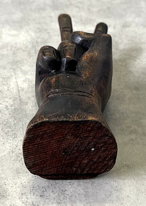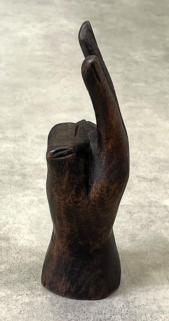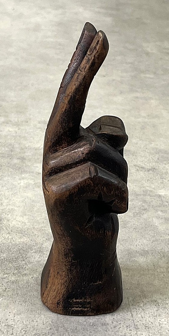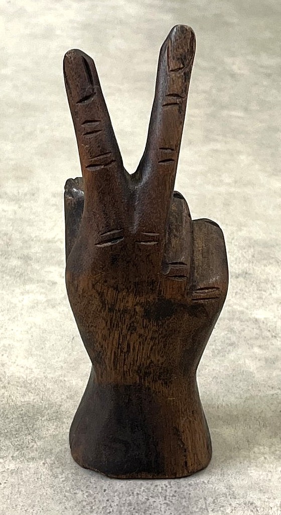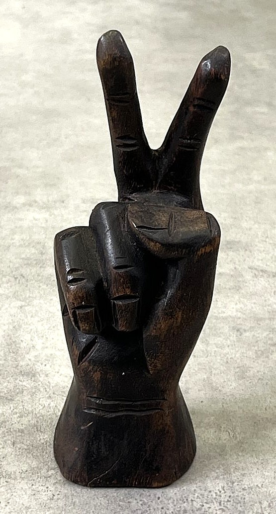 ウッドカービング ピースサイン ハンドサイン オーナメント オブジェ 手彫り 置物 (VINTAGE)