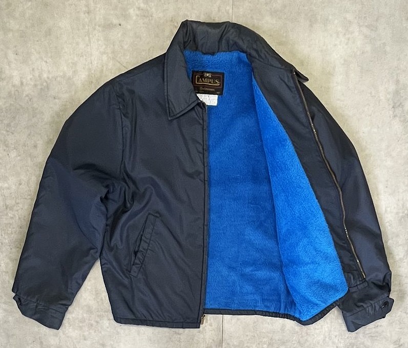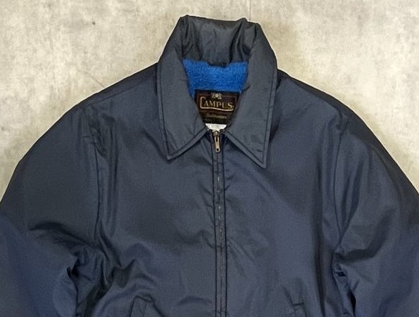 70'S CAMPUS 裏地ボア付き ナイロン ドリズラージャケット ネイビー TALONジップ USA製 (VINTAGE)
