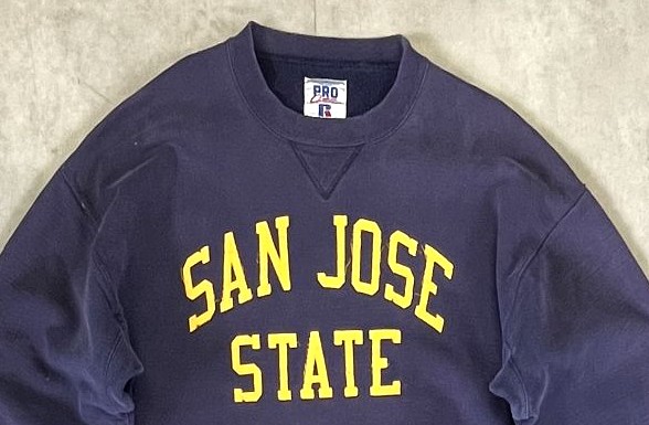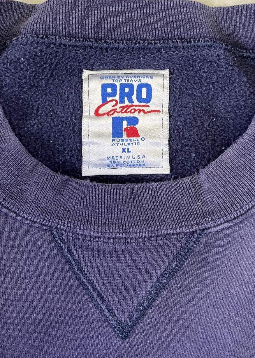 90'S RUSSELL ATHLETIC "PRO COTTON" 前Vガゼット付き クルーネック スウェットシャツ ナス紺 USA製 (VINTAGE)