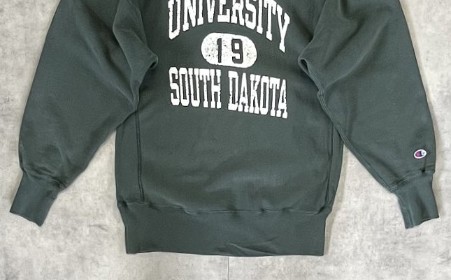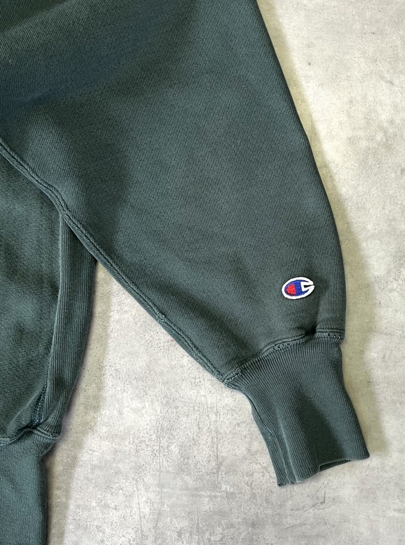 90'S CHAMPION "三段プリント" 刺繍タグ リバースウィーブ フェードグリーン メキシコ製 (VINTAGE)