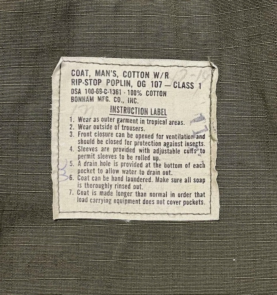 モデル:COAT, MAN'S, COTTON, W/R RIP-STOP, POPLIN, OG107 CLASS1