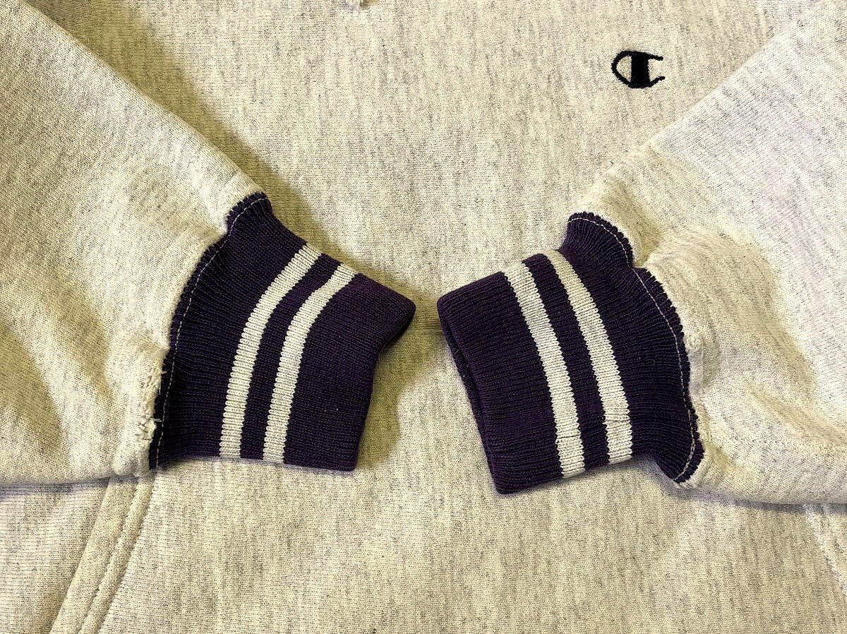 90'S CHAMPION 刺繍タグ リバースウィーブ リブライン入り パーカー アッシュグレー USA製 (VINTAGE)