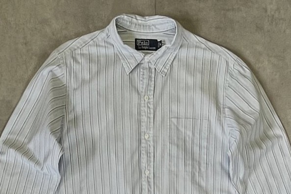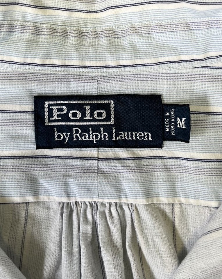 90'S RALPH LAUREN チンスト&マチ付き ポプリン プルオーバーシャツ ストライプ (VINTAGE)