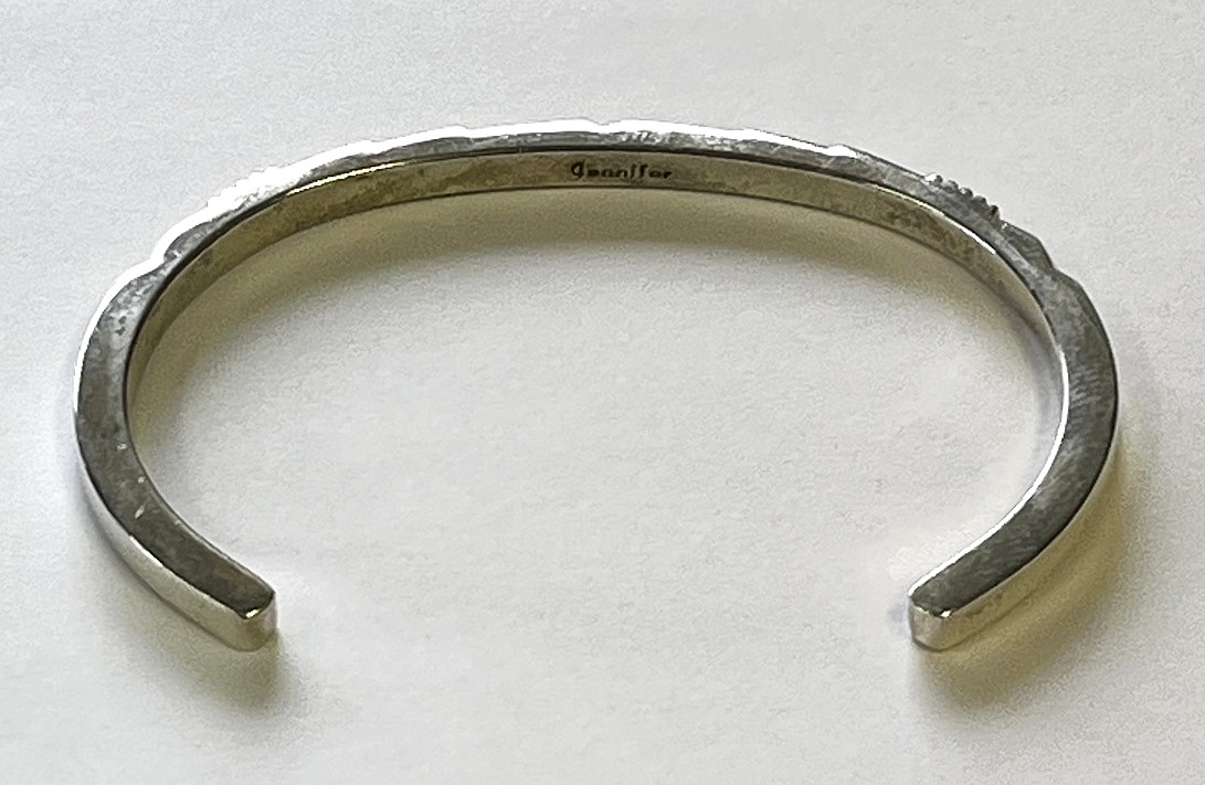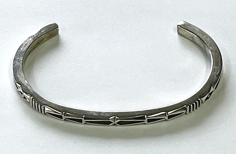 ナバホ族 インディアンジュエリー "JENNIFER CURTIS" スタンプワーク シルバー バングル (NEW)