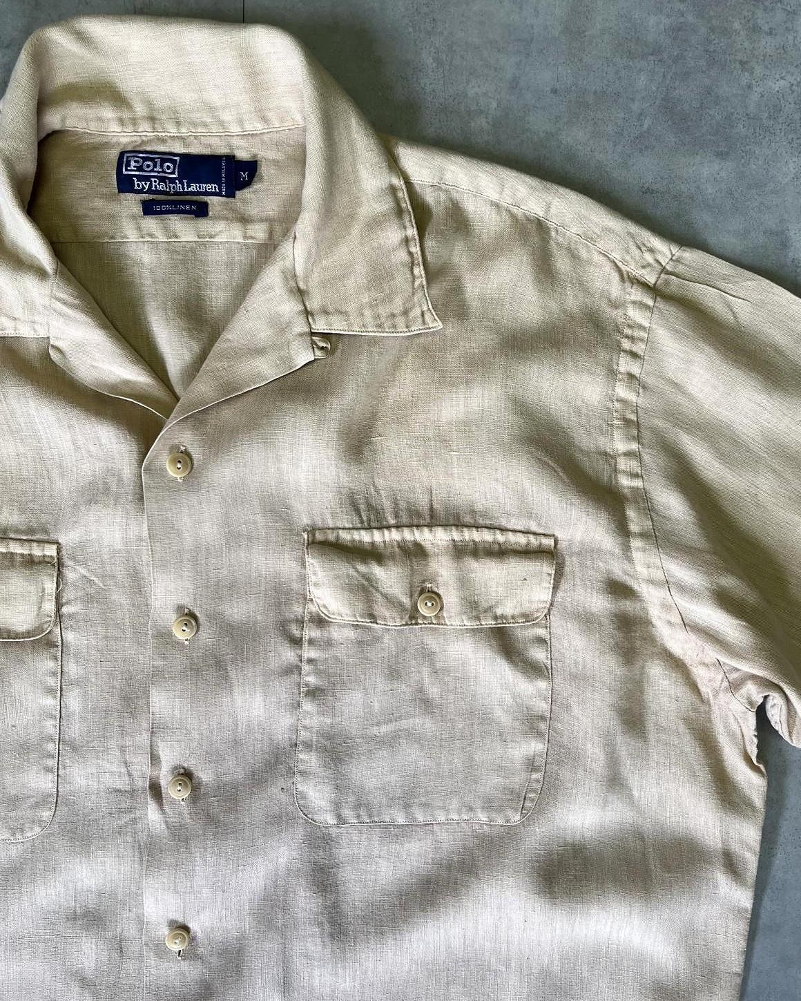 90'S RALPH LAUREN リネン フラップ付きポケット 半袖 オープンカラーシャツ ベージュ (VINTAGE)
