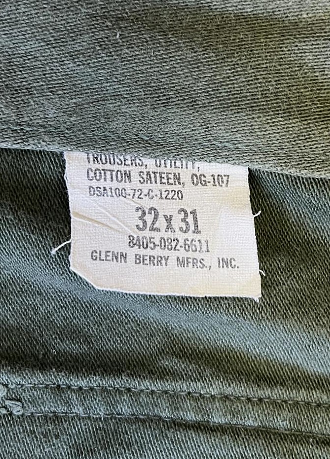 70'S アメリカ軍 US ARMY "OG107" コットンサテン ベイカーパンツ ミリタリーグリーン W32L31 (VINTAGE)