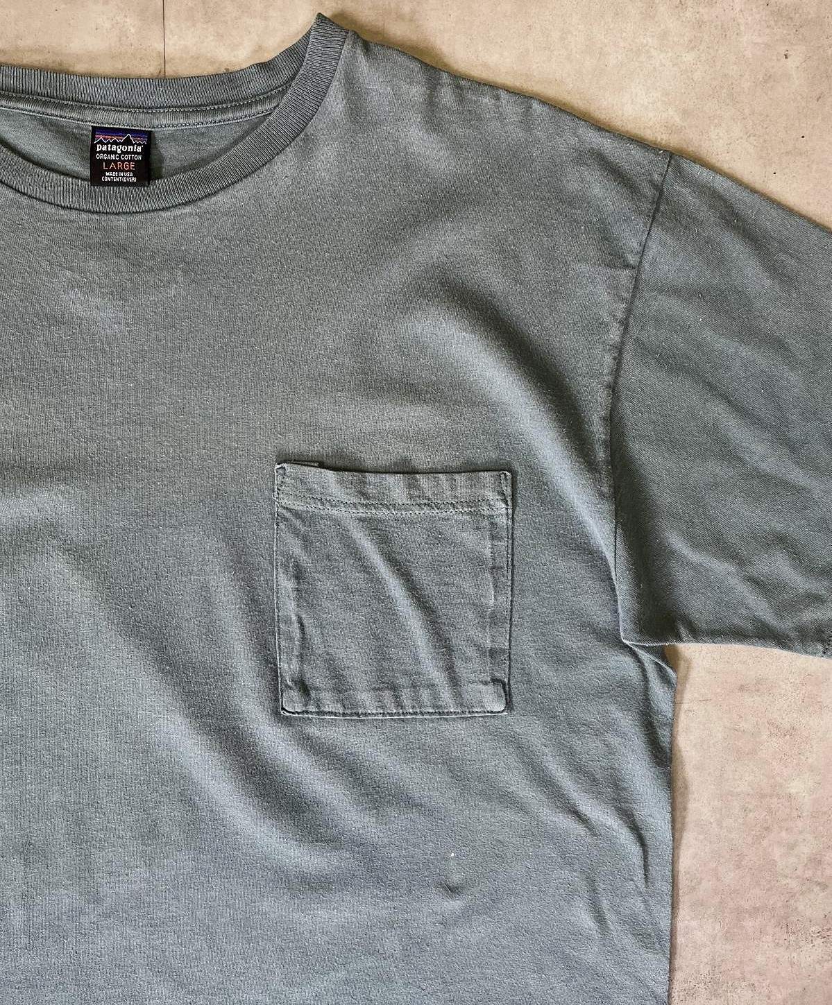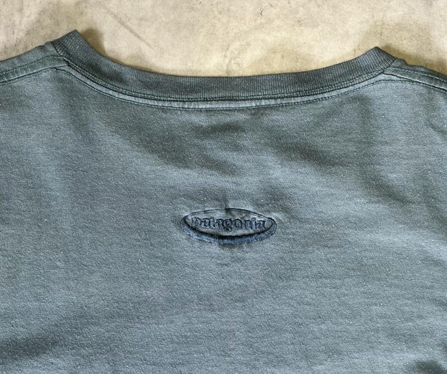 90'S PATAGONIA 黒タグ オーバルロゴ刺繍 半袖 ポケット付きTシャツ ブルーグレー USA製 (VINTAGE)