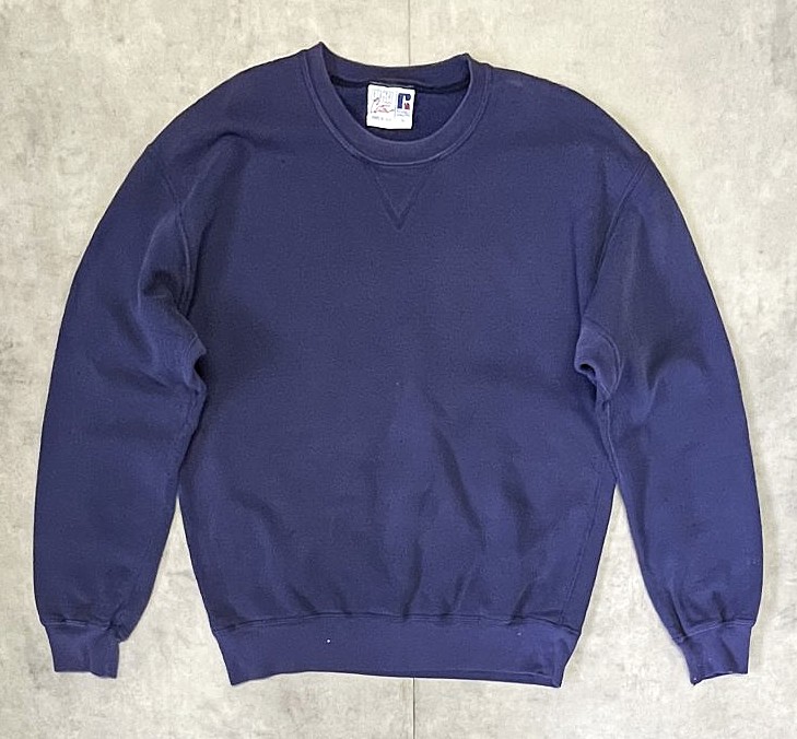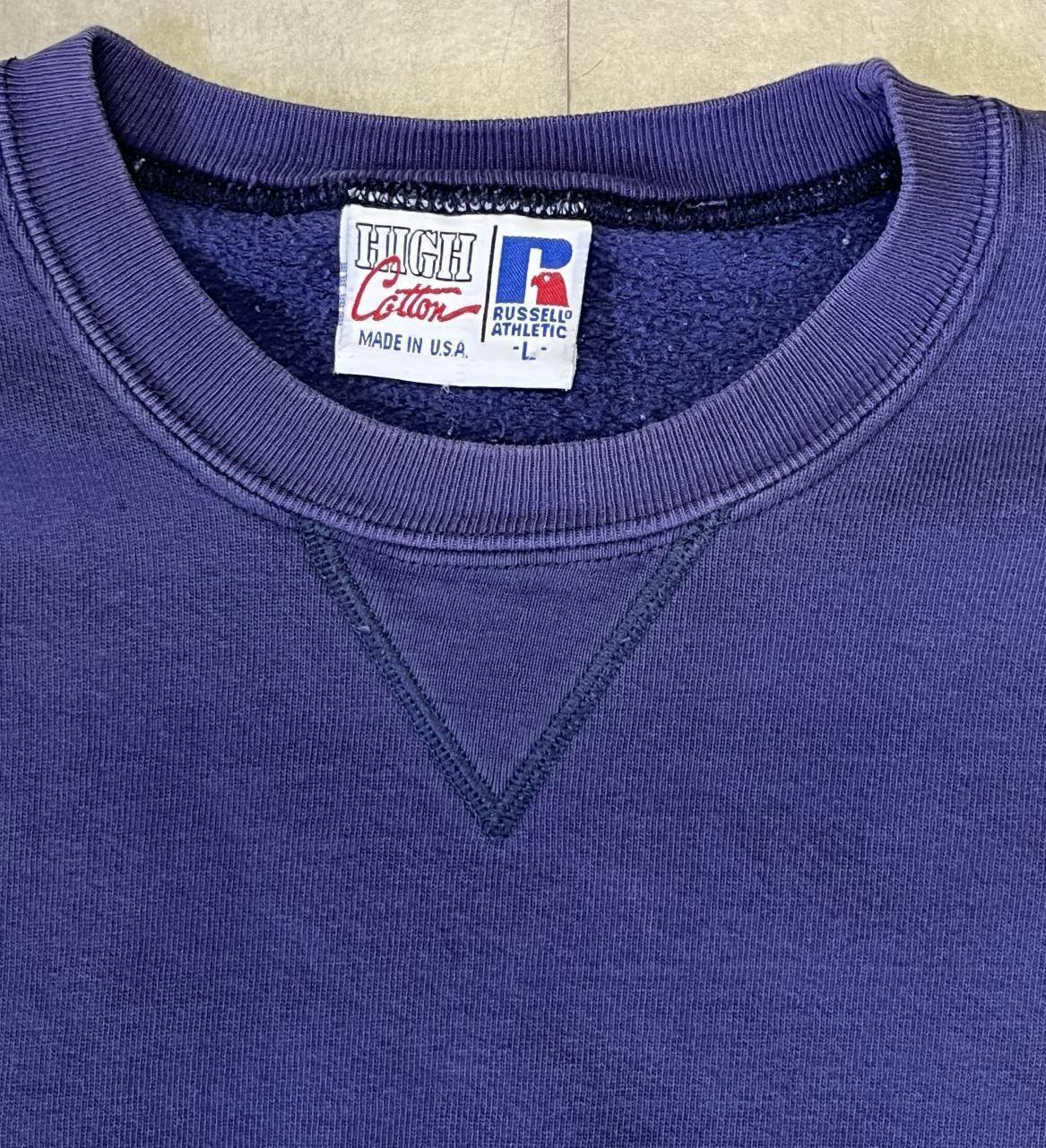 90'S RUSSELL ATHLETIC "HIGH COTTON" 前V&脇の下ガゼット付き クルーネック スウェットシャツ ナス紺 USA製 (VINTAGE)